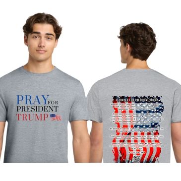 Encourage others to pray with the latest Pray for President Trump apparel available in all sizes small through 6X. Proudly printed in the USA.